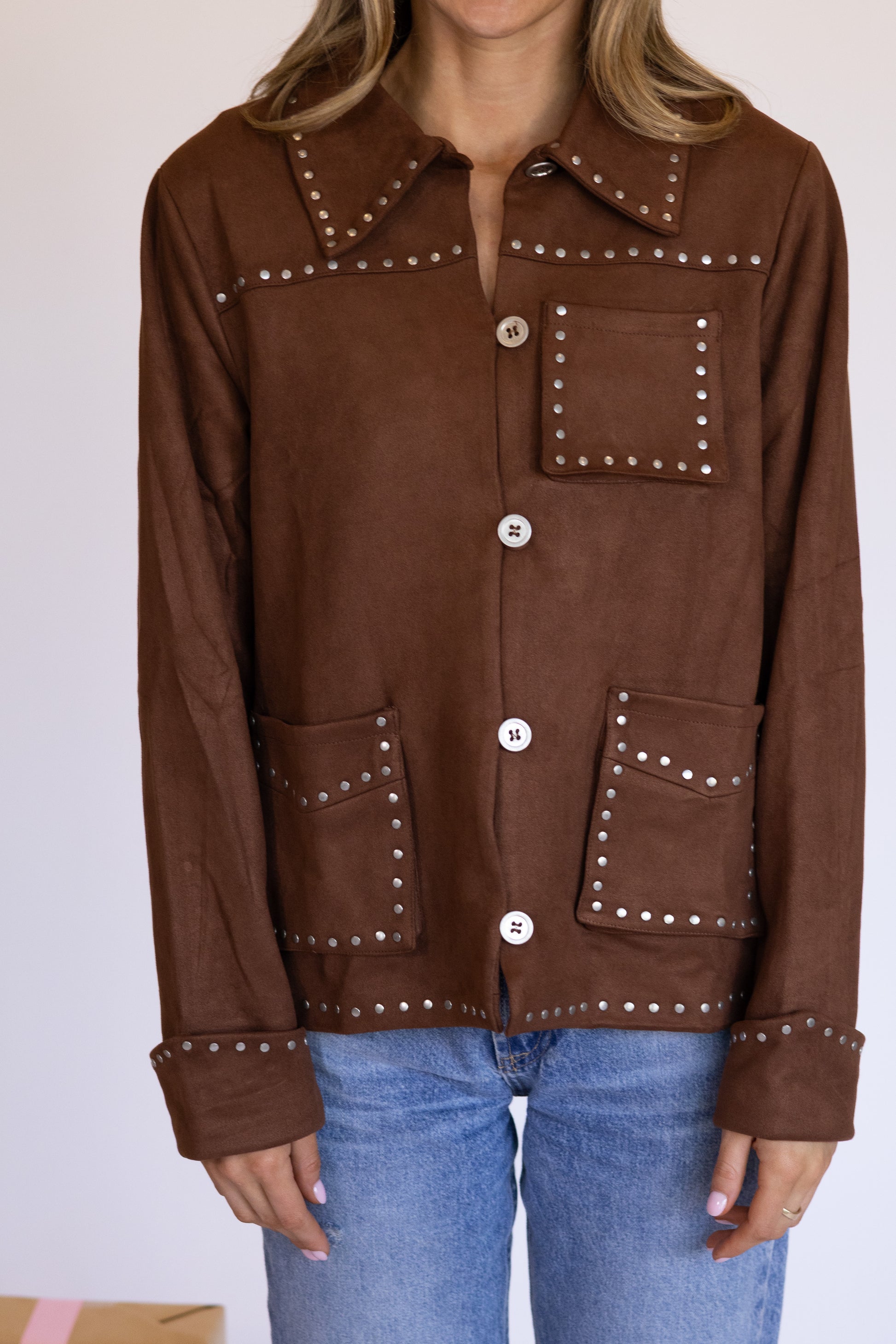 Elevate your look with the Collins Studded Jacket. The studded details make it an easy layer that instantly pulls an outfit together. Wear it with anything- it’s the perfect throw-on for nights out or concerts.